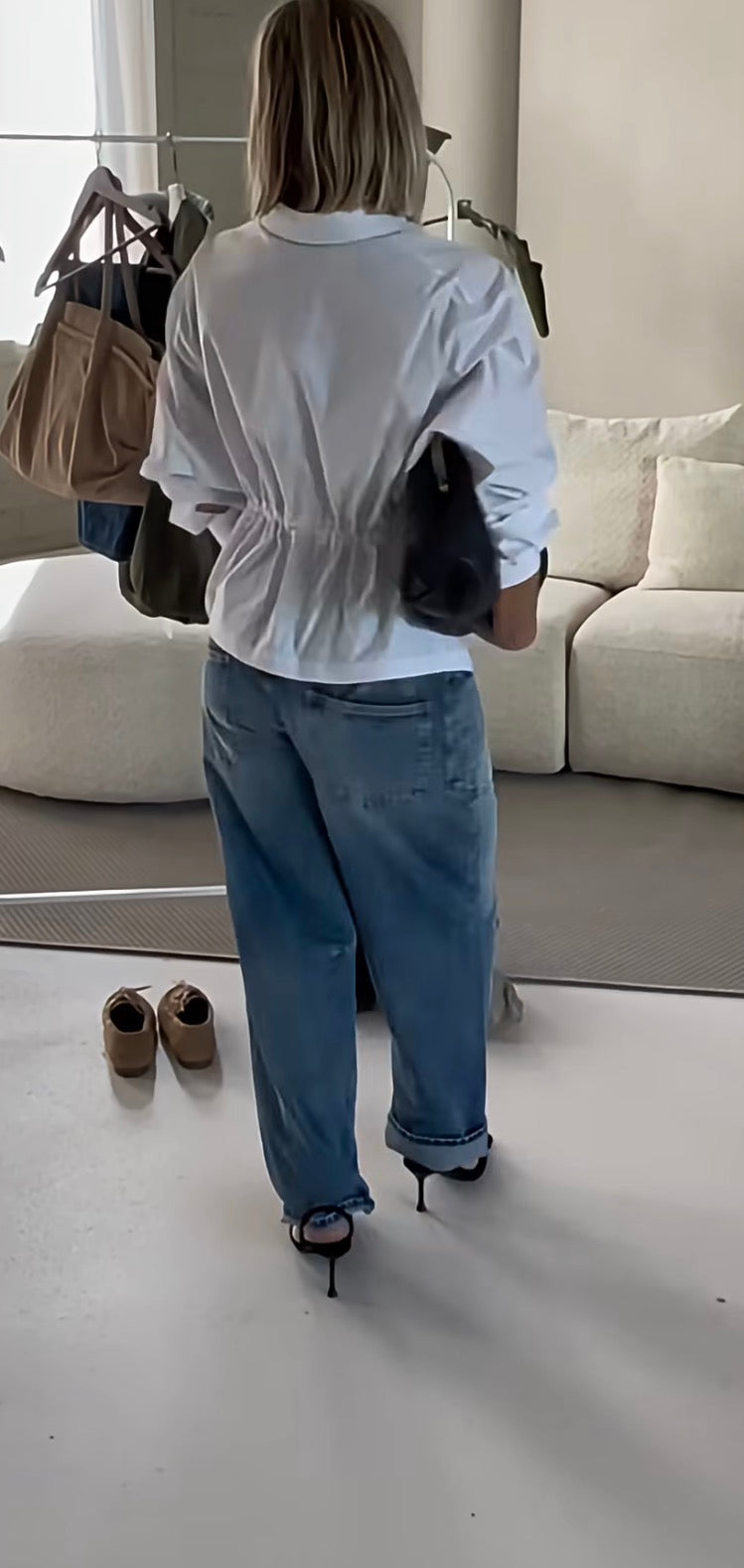 Een klassieker de witte blouse . Deze is dmv touwtjes tailleren.
